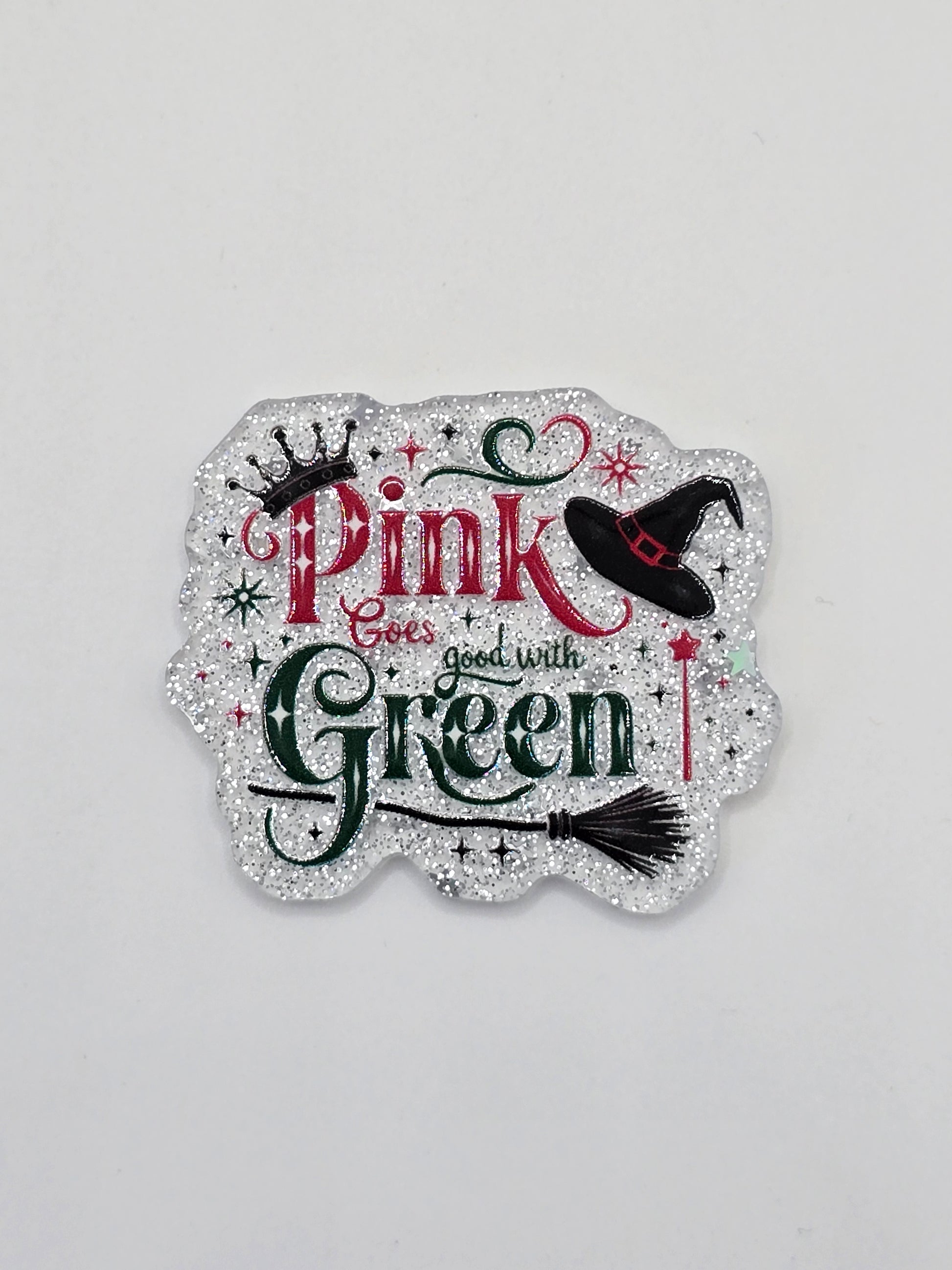 Acrylic Glitter Flatbacks- Pink and Green Wicked